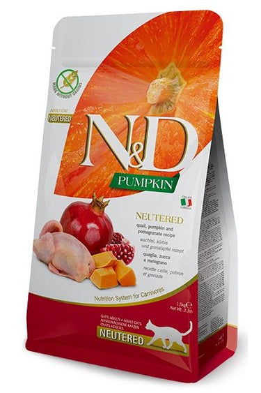 Ingredienser: Fersk vaktel (32%), tørket vaktel (30%), ertestivelse, tørket gresskar (5%), tørkede hele egg, kyllingfett, fersk sild, tørket sild, fiskeolje (fra sild), tørket gulrot, tørket alfalfa, inulin, fruktooligosakkarider, ekstrakt av gjær (kilde til mannan-oligosakkarider), tørket granateple (0.5%), tørket eple, tørket spinat, psyllium (0.3%), tørket appelsin, tørket blåbær, natriumklorid, tørket ølgjær, gurkemeie (0.2%), glukosamin, kondroitinsulfat.