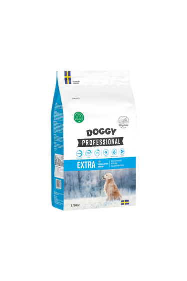 Doggy Professional Extra er et næringsrikt komplettfôr som er spesialutviklet for hundre med normalt aktivitetsnivå. Det gir hunden din alle næringsstoffer som trenger for en balansert og sunn livsstil, uten å gå på kompromiss med smak eller kvalitet.