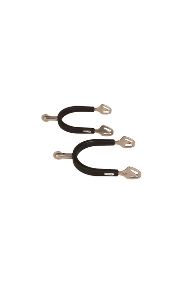Disse sporene i rustfritt stål er utviklet for presis og raffinert kommunikasjon mellom rytter og hest. Den solide konstruksjonen gir høy slitestyrke og lang levetid, mens gummibelegget sørger for at sporene sitter stabilt på støvelen og beskytter mot slitasje.