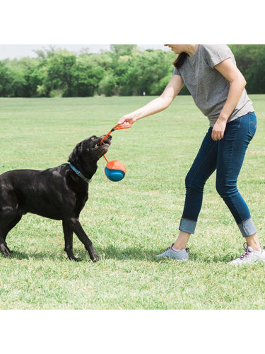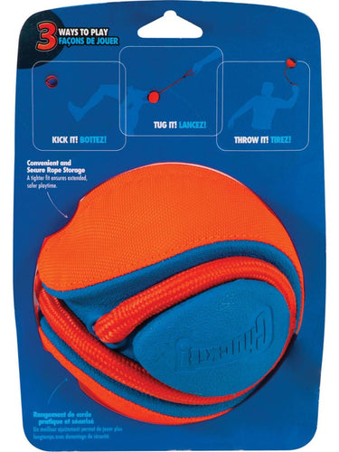 Chuckit!® Rope Fetch er en allsidig hundelek som kombinerer tre ulike leker i én. Du kan enkelt forvandle den til en apportleke ved å vikle ut tauet fra ballen.