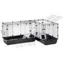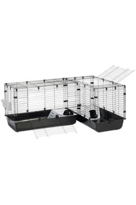 Cubix Corner er utstyrt med to store dører som kan plasseres fleksibelt – enten på toppen (til venstre eller høyre) eller på forsiden (til venstre), noe som gir enkel tilgang og en allsidig plassering i hjemmet ditt. Den leveres komplett med to plattformer, matskåler og en høyfôr, slik at kjæledyret ditt har alt det trenger for et lykkelig og sunt liv.