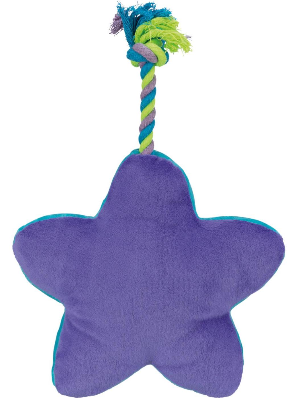 Solstjerne med tau, i myk plysj. Dette morsomme leketøyet kombinerer et attraktivt stjerneformet design med et slitesterkt tau, ideelt for interaktiv lek med hunden din.