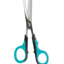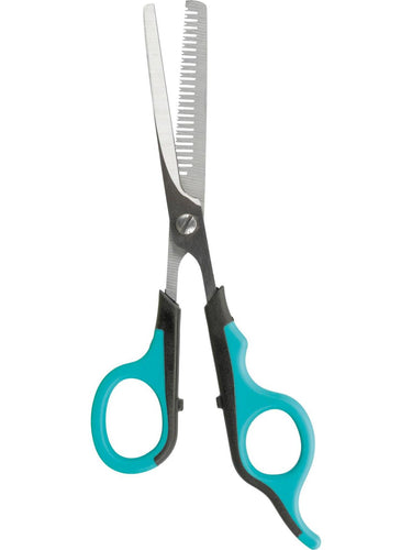 Denne saksen er laget av slitesterkt stål og er spesialdesignet for tynning av pels. Den er utstyrt med et plasthåndtak med gummigrep som gir et komfortabelt og sikkert grep under bruk. Saksen egner seg både til trimming hjemme og til profesjonell bruk, og gjør det mulig å skape et velstelt og jevnt utseende på hundens pels.