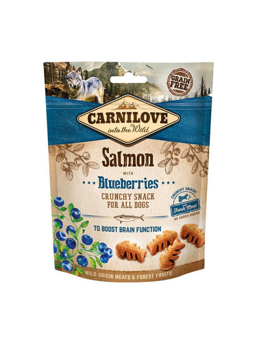 God, sprø laksehundsnacks. Med blåbær, en naturlig kilde til antioksidanter for riktig hjernefunksjon.