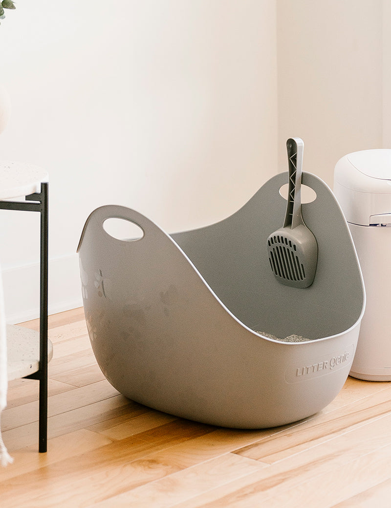 Litter Genie® Litter Box er en søppelkasse med et moderne og gjennomtenkt design som passer for både katter og mennesker. En lett men robust søppelkasse som med sine integrerte håndtak og fleksible materialer gjør tømming og rengjøring av boksen rask, enkel og ergonomisk. Den lave inngangen og de høye sideveggene gjør det enkelt for katten å trå inn og forhindrer samtidig unødvendig søl rundt søppelboksen.