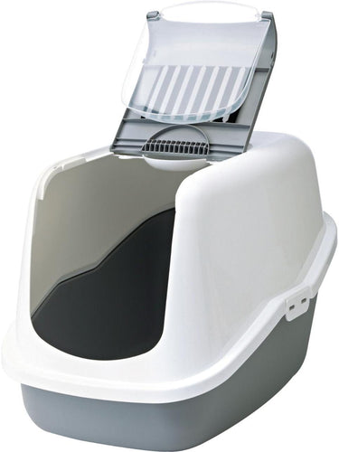 Kattetoalettet Nestor er enkelt å rengjøre. Den spesialutviklede fronten åpnes bredt, slik at det skitne kattesandet kan fjernes forsiktig og raskt uten å fjerne den øverste delen. Brettet til Nestor har en hevet rygg som forhindrer lekkasjer. Med innebygd håndtak, svingdør i plast og kullfilter.