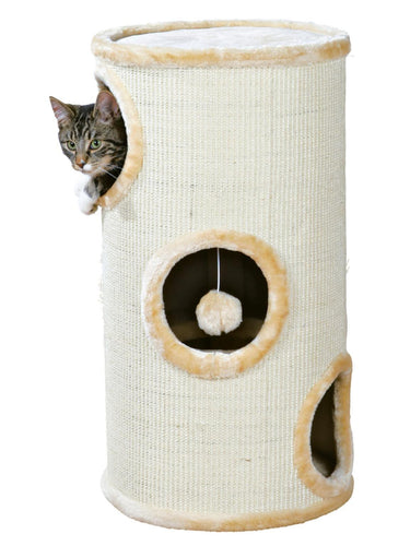 Katte tårn, Joyca, 70 cm, med sisal kradseoverflade og plysbetræk. 3 etager - polstret platform. Med legetøj på bånd. farve: Natur/beige