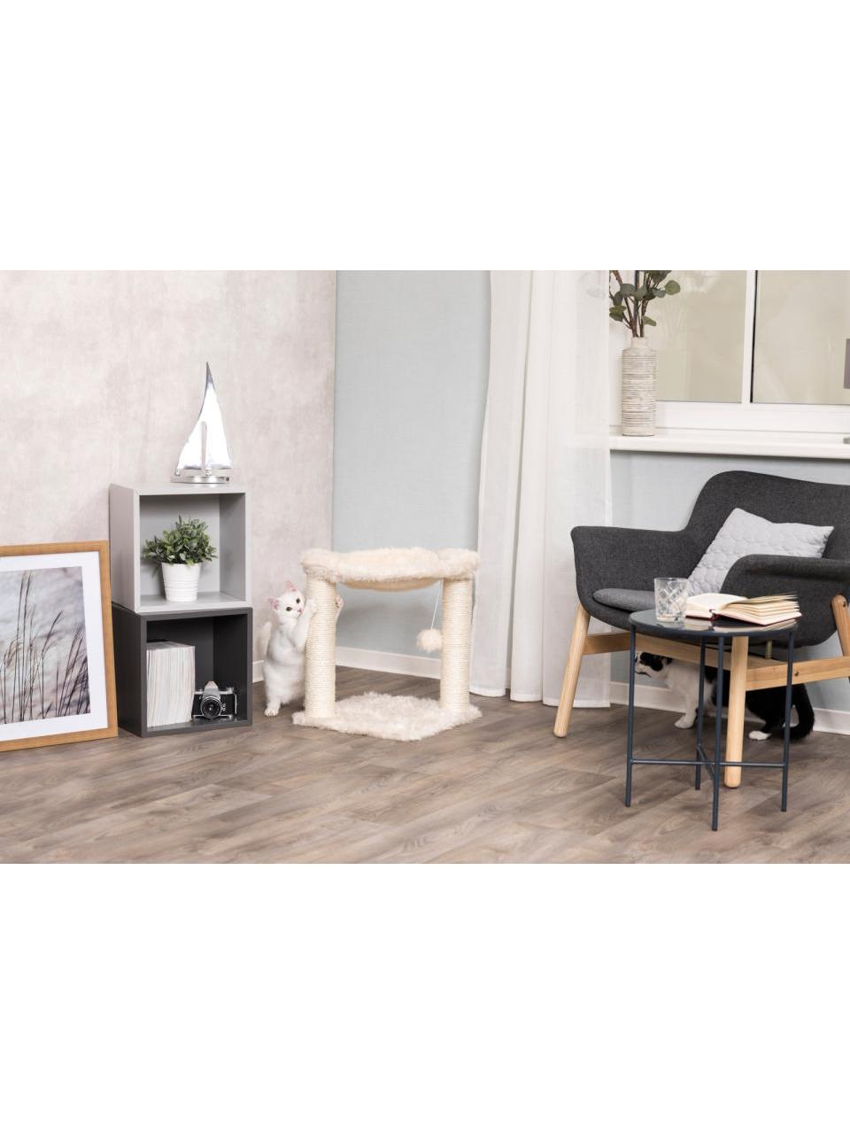 Baza kløestolpe er en kompakt og stilig kløestolpe på 50 cm, ideell for mindre rom. Den har en robust sisalstamme med en diameter på 6 mm som gir et godt underlag for kloring. Klorestativet er trukket med langhåret plysj (polyester) med en tetthet på 370 g/m², noe som gir en myk og behagelig følelse. Kremfargen gir en lys og nøytral tone som passer til ulike interiørstiler. Katten din får et sted å klø seg og strekke seg, samtidig som den passer inn i hjemmet ditt.