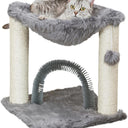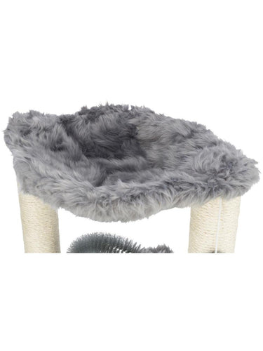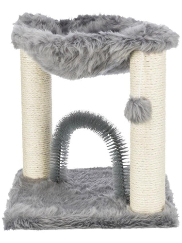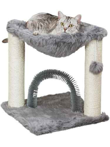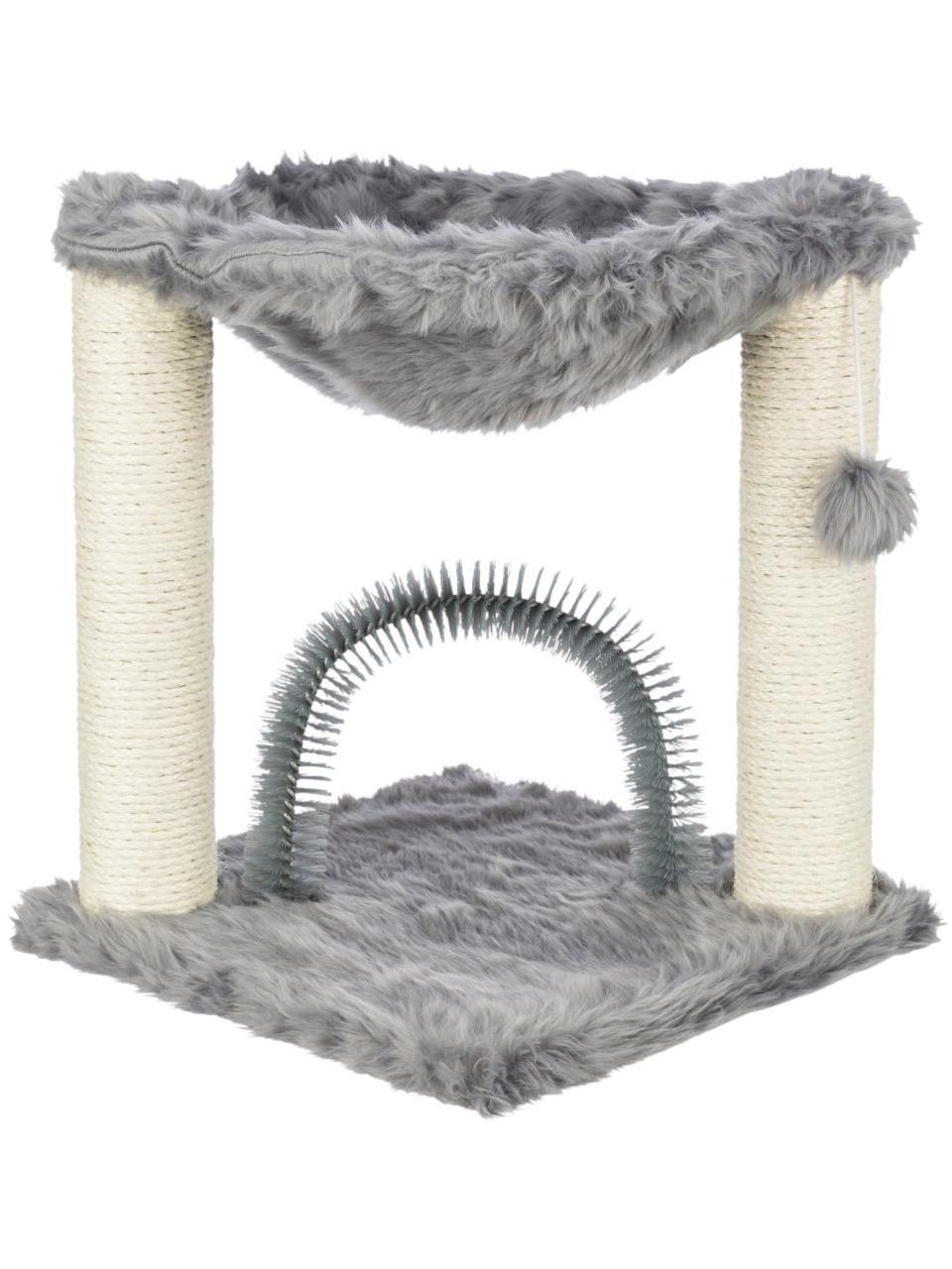 – stolper for kloring og klatring samt en koselig hengekøye for hvile. Høydepunktet på dette kattetreet er imidlertid pelspleiebuen, som er et optimalt alternativ til en børste og fremmer naturlig pelspleie. De slitesterke bustene masserer og pleier kattens hud og pels, og fjerner på den måten løse hår.