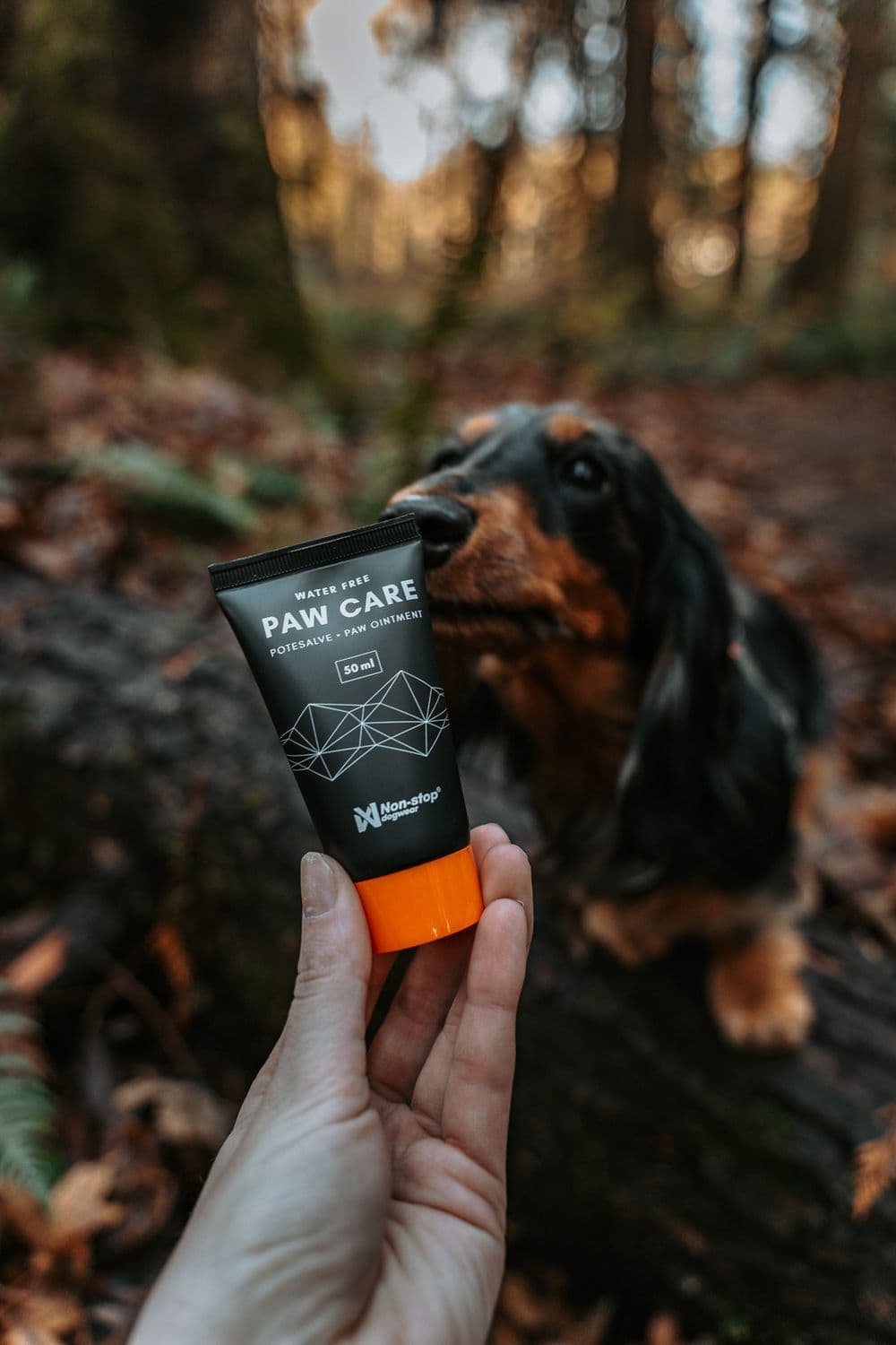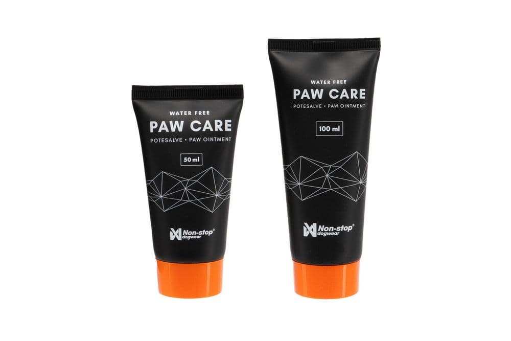 Paw care er tilgjengelig i 100 ml og 50 ml beholdere.