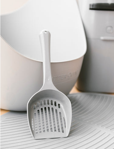 Litter Genie® Scoop er en dyp katteskje som gjør det enkelt å kaste skitten kattesand. De smale sporene samler selv de minste klumper, og sikrer at ingenting blir liggende igjen. Til slutt passer de avrundede kantene på bøtta perfekt sammen med de buede og fleksible kantene på Litter Genie® Litter Box.