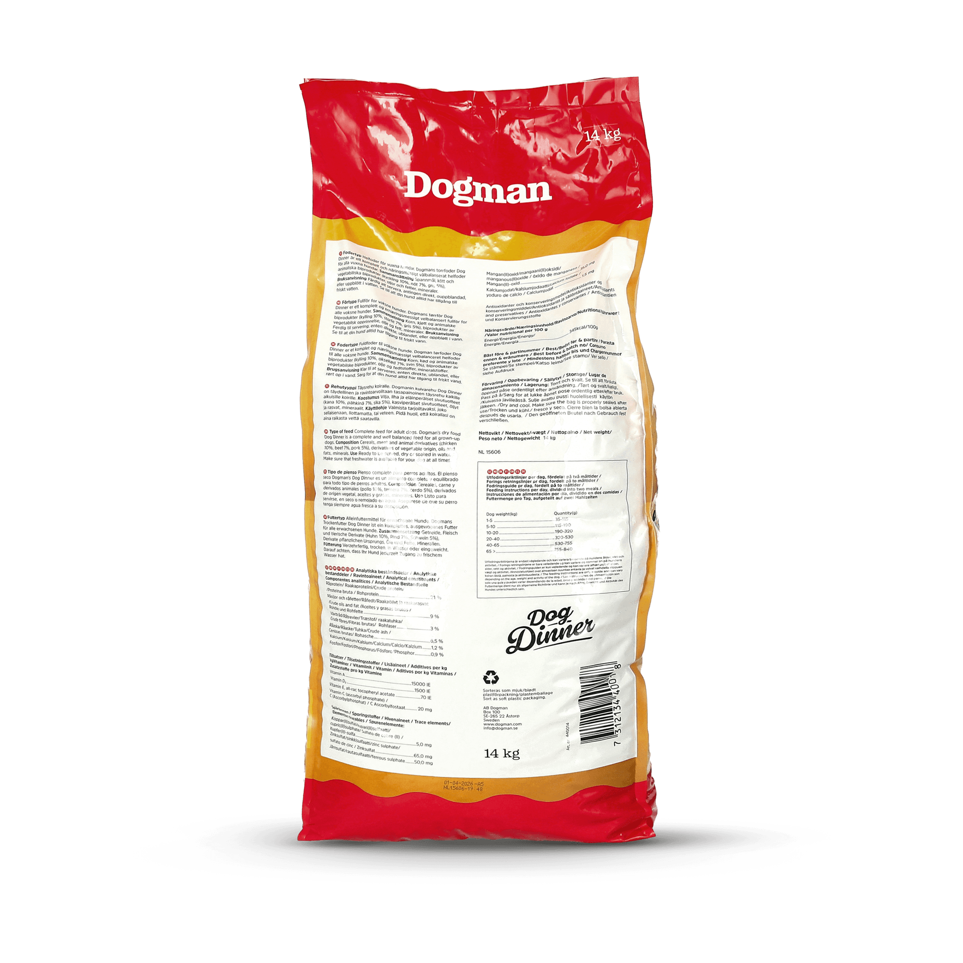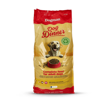 Dogman Dinner er et komplett og smakfullt fullfôr for voksne hunder med en smakfull kombinasjon av svin, storfe og kylling. Det er ernæringsmessig balansert og inneholder alt hunden din trenger for å ha det bra.