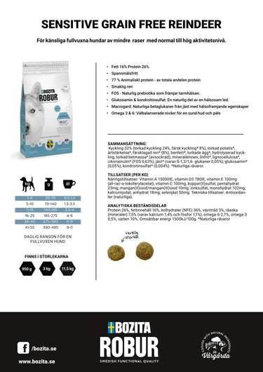 Bozita Robur Sensitive Grain Free Tørrfôr - Hundemat med Reinsdyr