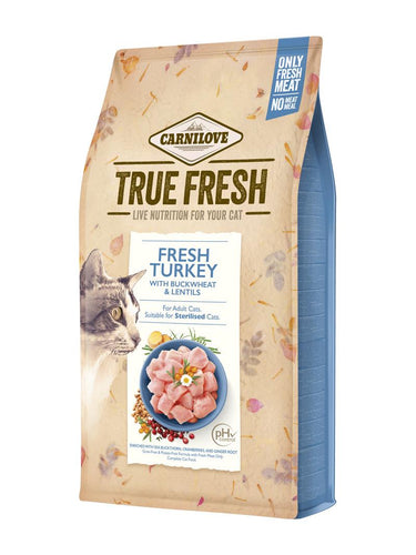 Oppskriften har et høyt innhold av ferskt kalkunkjøtt fra lokale produsenter. En unik produksjonsprosess bevarer de originale egenskapene til ingrediensene og gir en eksepsjonell smaksopplevelse som tilfredsstiller kattens naturlige instinkter. Kjøttet er bearbeidet ferskt, noe som gir utmerket smak og høyere fordøyelighet. Bokhvete, erter og linser er naturlige kilder til vegetabilsk protein og mineraler som er nødvendige for god forbrenning. De bidrar også til en optimal vekt. Erter og røde linser er utmerkede kilder til fiber med lav glykemisk indeks. -Frisk kalkun – mager, lett å fordøye og svært velsmakende. -Tranebær, tindved og blåbær bidrar til en optimal urin pH og sunne urinveier. -Kostfiber og L-karnitin – utmerkede næringsstoffer for vektkontroll hos katter.