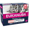 EUKANUBA Grain Free* rik på laks er også tilgjengelig som tørrfôr i vanlig EUKANUBA premiumkvalitet. Dette gjør at du kan kombinere fordelene med våt- og tørrfôr med blandet fôring for å gi katten din best mulig ernæring!