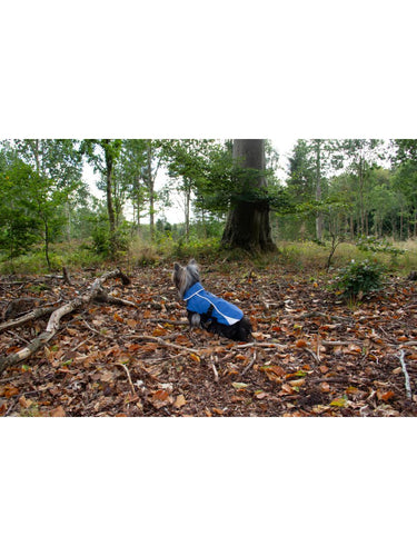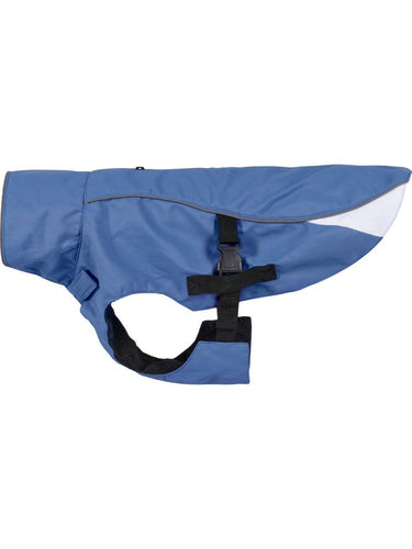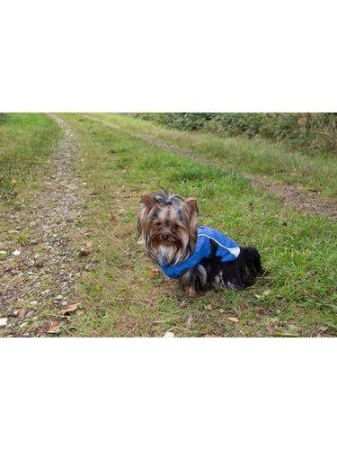 Vind- og vanntett hundedekken med refleksstripe. Kontrast oxford stoff med PVC-belegg gir vanntett funksjon. Innvendig fôret med mykt nettingfôr. Justerbar brystdel med reflekterende stropp. Båndet kan raskt festes gjennom glidelåsåpningen på baksiden. Vanntett. To justerbare elastiske stropper på innsiden av ryggen fester dekkenet bedre på hunden.