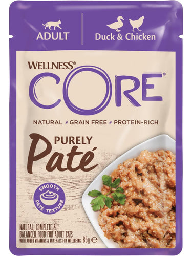 Wellness CORE CAT er basert på ernæringsfilosofien om at katter, på grunn av sine opprinnelige aner, trives best med et kosthold som hovedsakelig består av kjøtt. Wellness CORE Purely Paté Duck & Chicken har en myk patétekstur som kattene elsker, og en proteinrik smak som de ønsker seg, og vil garantert falle i smak hos selv de mest kresne kattene!