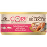 Vår Wellness CORE Signature Selects Flaked Skipjack Tuna with Salmon Entree in Bouillon er komplette og balanserte måltider som på en naturlig måte leverer det proteinet, den smaken og den konsistensen kjøtteteren din ønsker.