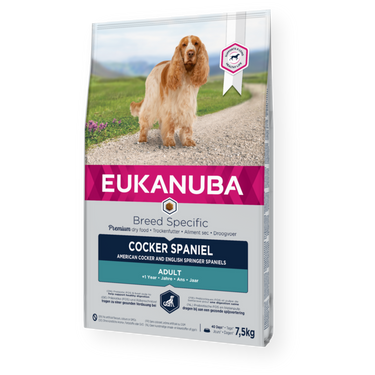 Eukanuba tørrfôr for voksne cocker spaniel, også ideell for amerikanske cocker spaniels og english springer spaniel, er formulert med L-karnitin og naturlig taurin, som er viktige næringsstoffer for å holde hundens hjerte sunt, og det skreddersydde nivået av L-karnitin vil bidra til en naturlig fettforbrenning. Denne raseernæringsdietten inneholder prebiotika og betemasse for å fremme hundens fordøyelseshelse og et optimalt opptak av næringsstoffer.
