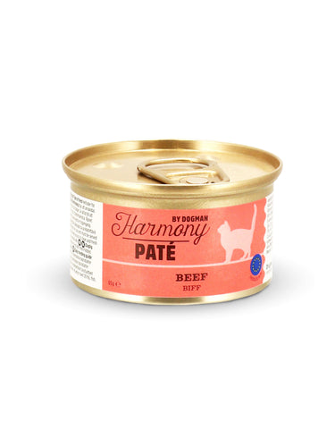 God paté med storfekjøtt for voksne katter. Høykvalitets fullfor med høy smaklighet og kjøttinnhol av nøye utvalgte ingredienser. Inneholder alt din katt trenger. Uten sukker, tillsatser el fargestoffer. Harmony gir din katt en bra magefølelse! Kornfri.