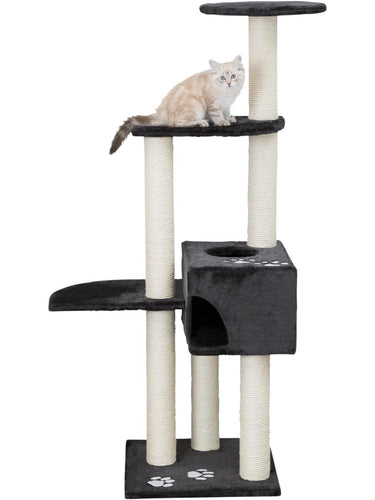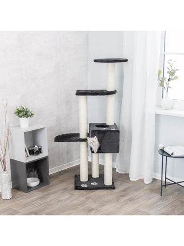 Katteinnhegningen Alicante, med en høyde på 142 cm, er en luksuriøs og funksjonell konstruksjon for katten din. Det består av en hule dekket av plysj/fleece (polyester) som gir et koselig hvilested. Klatretårnet er designet med flere kløepinner av sisal, noe som gir katten optimale muligheter til å klore og bidrar til å vedlikeholde klørne. Det er også plysjpolstrede soveplasser for ekstra komfort og hvilemuligheter. Alicante kattemiljø er ikke bare praktisk, men også et estetisk tiltalende tilskudd til hjemmet ditt, og gir katten din et allsidig og komfortabelt sted å leke, hvile og klore.