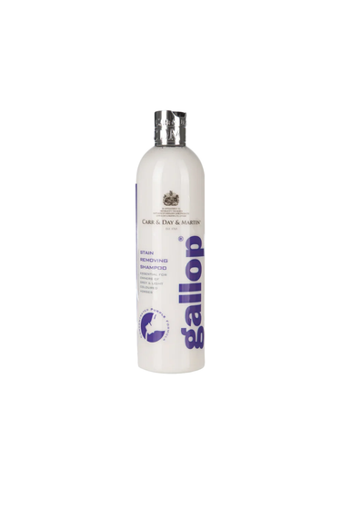 Carr & Day & Martin Gallop Stain Removing Shampoo er en kraftig sjampo som er spesielt utviklet for å fjerne tøffe flekker og smuss fra pelsen til hesten din. Den er ideell for bruk før konkurranse eller utstilling, eller bare for å gi hesten din en skinnende ren pels.