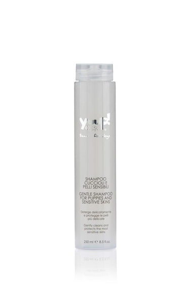 Spesialsjampo for valper og hunder med følsom hud. Denne milde sjampoen er spesielt formulert for å pleie sensitiv hud og pels hos både valper og voksne hunder, og kan også brukes på katter.