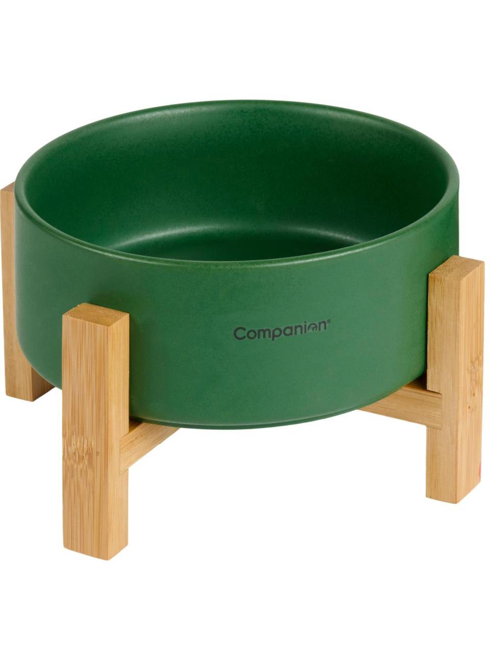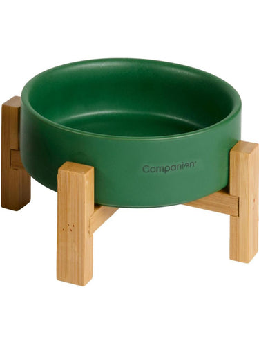 Keramisk skål med matchende bambusstativ fra Companion-serien i fargen Nordic Green. Skålen tåler oppvaskmaskin, noe som gjør rengjøringen enkel og praktisk. Bambusstativet tilfører skålen et naturlig og stilig element og bidrar til å holde den på plass under bruk. Den keramiske skålen med bambusstativ er både praktisk og estetisk tiltalende.