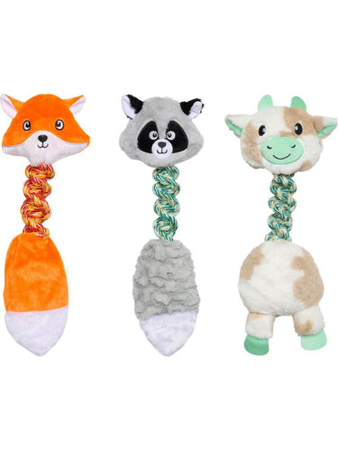Plysjleketøyet er formet som et søtt dyr med en kropp laget av tau. Den kombinerer mykt plysj og slitesterkt tau for å gi hunden din en morsom og allsidig lekeopplevelse. Det myke plysjmaterialet gjør den ideell til å kose og kose med, mens tauet gir en tyggeutfordring som kan bidra til å fremme hundens tannhelse. Den morsomme kroppsleken i tau kan brukes til å kaste, trekke og tygge med.