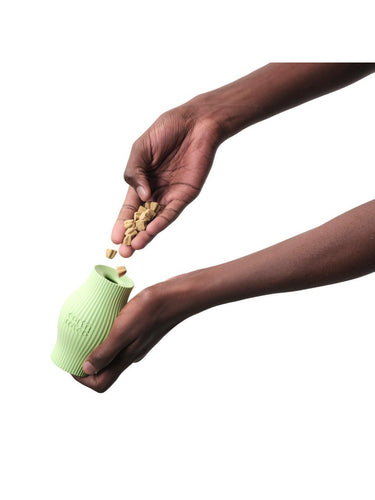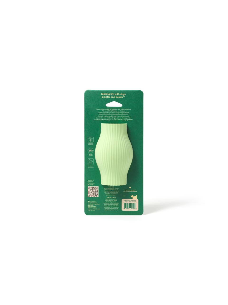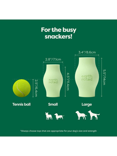 - Designet for å fylles med hundens favorittgodbiter eller mat for å holde den opptatt eller unngå at den spiser maten for raskt.