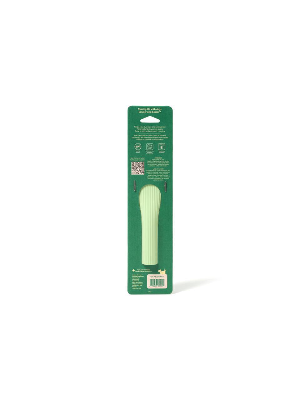 - Ribbet ergonomisk design gjør at hunden kan gripe og holde den som et bein.