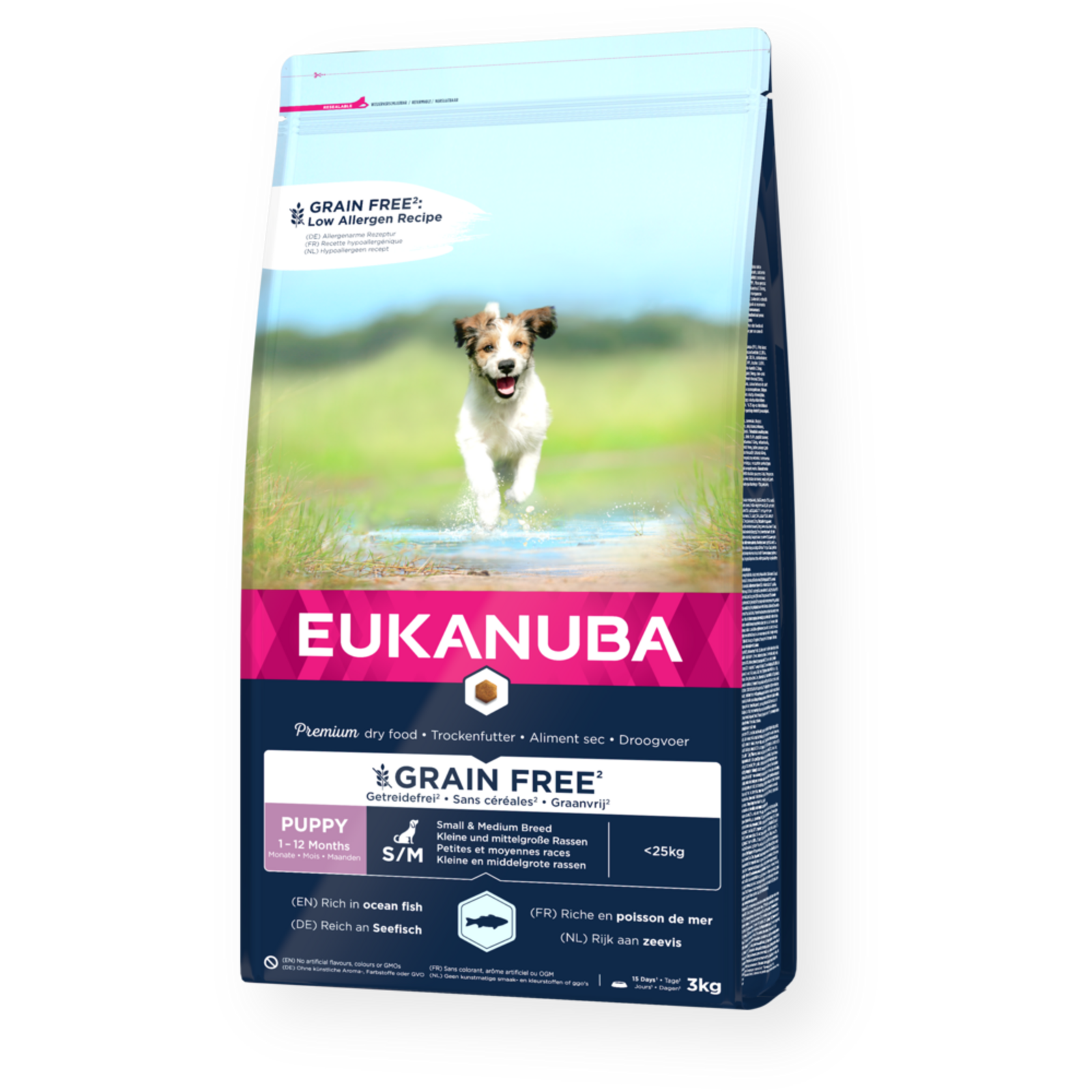 EUKANUBA Puppy & Junior Small/Medium Grainfree Havfisk – Kornfritt Tørrfôr for Voksende Små og Mellomstore Hunderaser