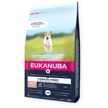 EUKANUBA Senior Small/Medium Grainfree Havfisk – Kornfritt Tørrfôr for Eldre Små og Mellomstore Hunderaser