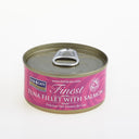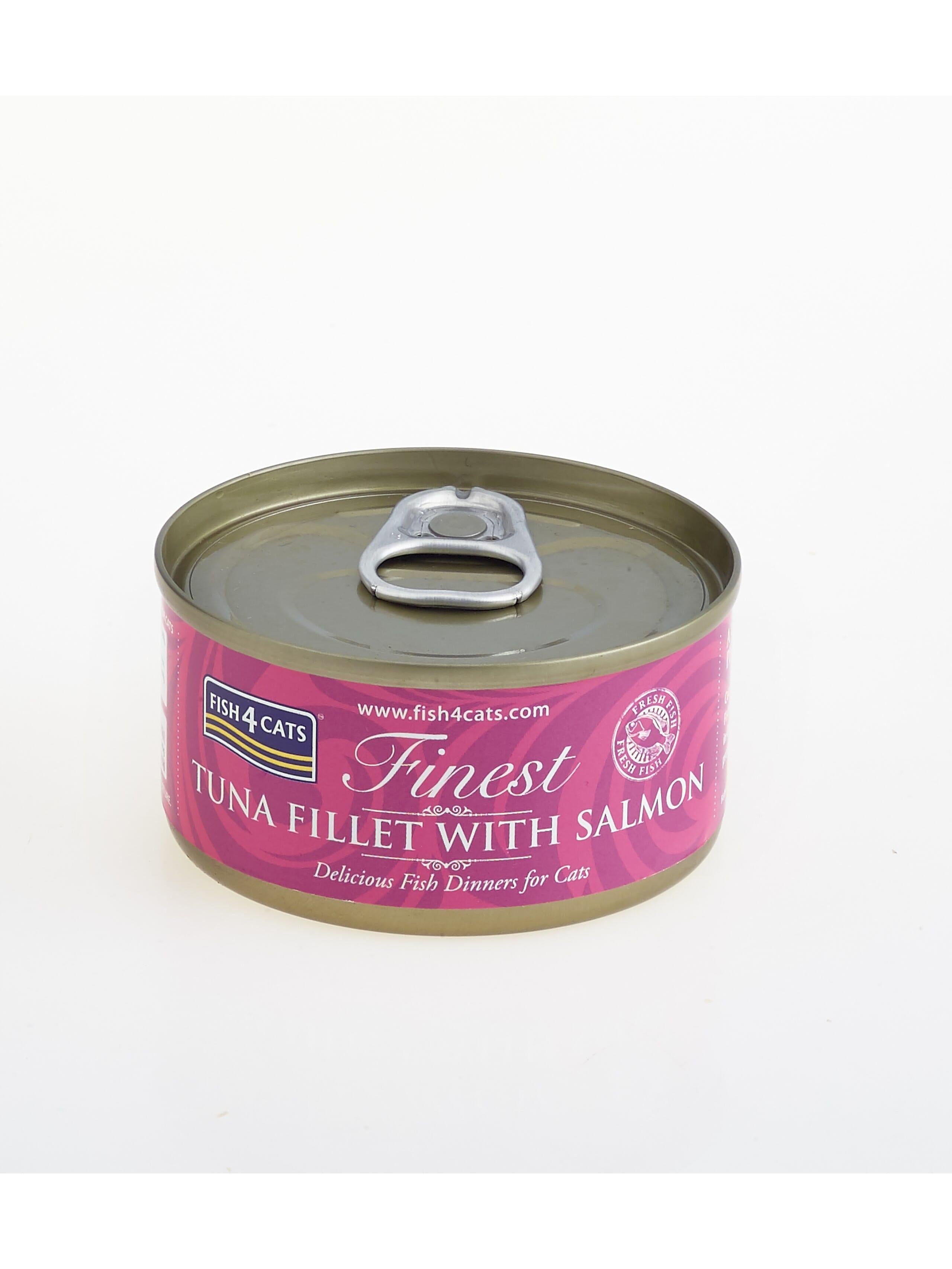 Finest Fish4Cats Våtfôr - Tunfisk og laks Vi presenterer et bredt utvalg av Finest våtfôr fra Fish4Cats. Nå med hele 15 forskjellige smaker å velge mellom; skulle det være noe for enhver smak! Våtfôret inneholder et utvalg av luksuriøse ingredienser, og selv de mest kresne kattene vil kunne finne noe fristende her. Katter elsker smaken av fisk - og med fisk som er naturlig rik på Omega 3 og inneholder et høyverdig lett-fordøyelig protein, er det et sunt og godt måltid. I dette fôret får man en balansert diett som både er smaksrik, men også reflekterer det naturlige innholdet i en optimal diett for katter. I enhver veiledende anbefaling vil man finne at kosten til katten bør bestå av høyest mulig innhold av fisk eller kjøtt, og med Fish4Cats får du dette innholdet på nivå med premium-merkene, og langt over dagligvare-nivå. Sammensetning: Tunfisk 54%, fiskebuljong 38%, Laks 4%, Ris 4%. Næringsinnhold: Råprotein 12%, råfett 0.1%, råfiber 0.9%, råaske 2%, fuktighet 83%. Fôringsveiledning: Liten katt Under 3kg 70g 1 boks Medium katt 3kg - 5kg 140g 2 bokser Stor katt Over 5kg 210g 3 bokser