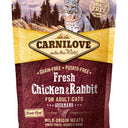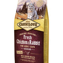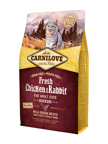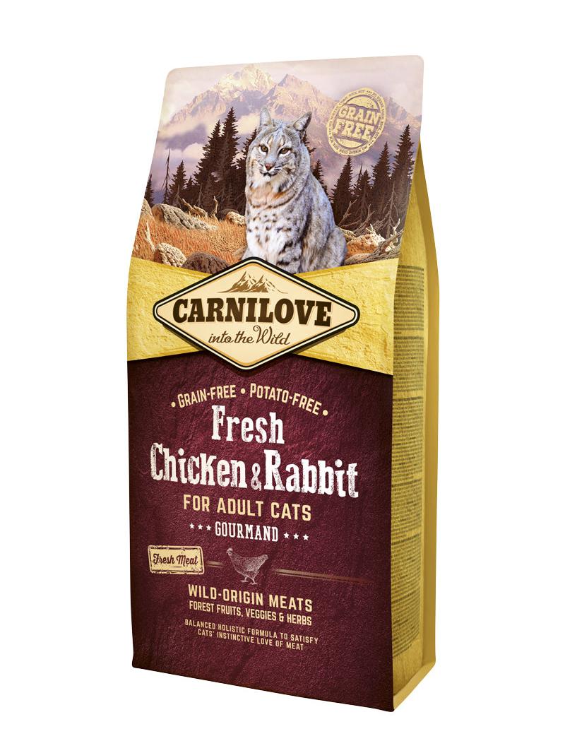 Katter er unike og uavhengige skapninger. De er kjøttetere og fullblods rovdyr hvis livsstil er definert av et sterkt jaktinstinkt. Carnilove fersk kylling & Kanin er utviklet med respekt for naturlovene og gir kattevennen din et balansert kosthold som er rikt på ferskt kjøtt i kombinasjon med ulike grønnsaker, bær og urter.