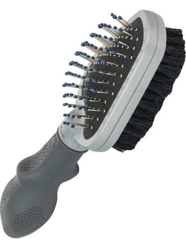 FURminator Large Double Brush er en allsidig pleieløsning som effektivt fjerner løse hår og gir hunden en vakker og sunn pels. Med to sider - en med bust og en med gummibust - gir den grundig og skånsom børsting.