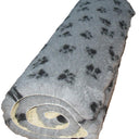 Kraftig, svart, sklisikker hundefelle med hvite poter av høy kvalitet med gummiert bakside - VetBed-fellen er vaskbar med sklisikker beskyttelse slik at fellen holder seg på plass i hundeburet. Kraftig felle i størrelsene 75x75 cm, 75x100 cm og 100 x 120 cm for de helt store hundene, høy kvalitet med gummiert bakside og hundefellen kan vaskes på 30 grader. Lupusfelle, god kvalitet, hundefelle perfekt til BIA-sengen eller bilburet til hunden.