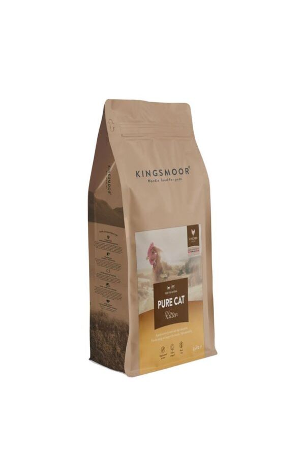 Kingsmoor Pure Chicken Kitten er et komplett vedlikeholdsfôr utviklet spesielt for kattunger i vekst og diegivende katter, med kylling som eneste proteinkilde. Fôret er sammensatt for å møte de spesielle ernæringsbehovene hos kattunger, med høyt proteininnhold som støtter sterk muskelutvikling, vekst og sunn kroppsfunksjon.