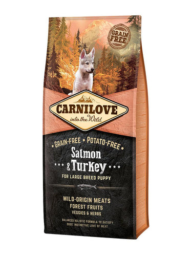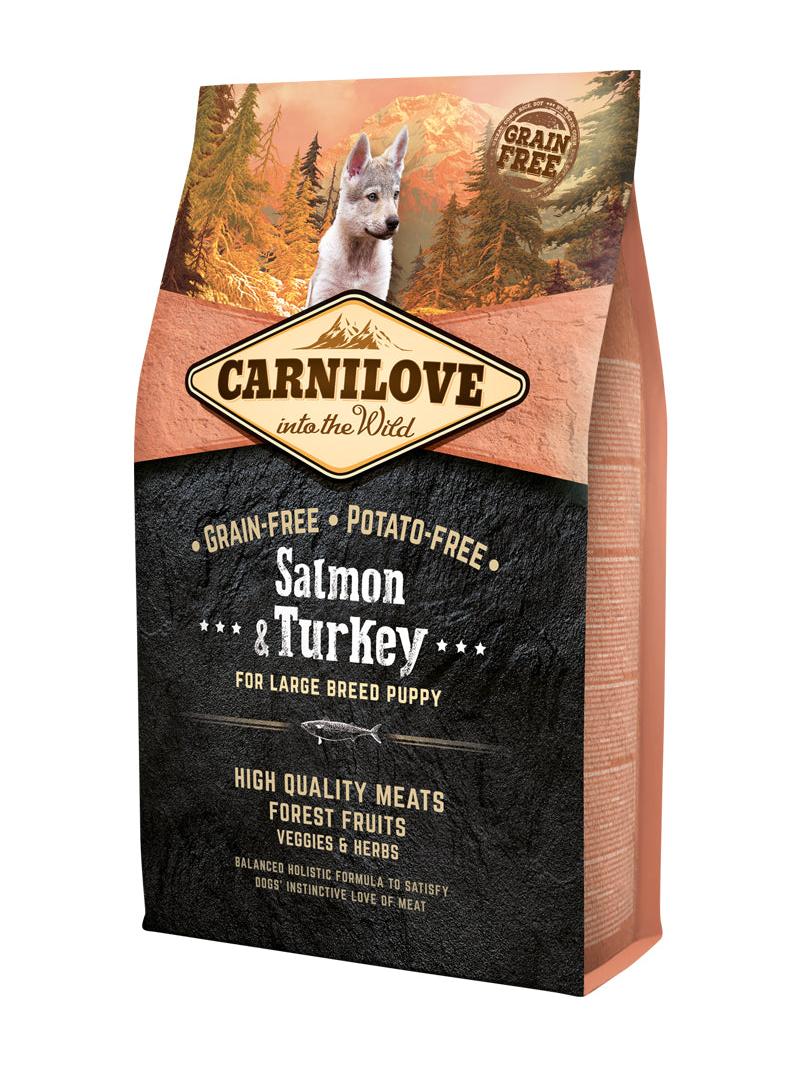 Carnilove Salmon & Kalkun for valper av store raser har blitt formulert med respekt for de spesielle behovene til valper av store raser for å gi dem en diett rik på essensielle næringsstoffer, proteiner og fett for riktig vekst og sunn brusk.