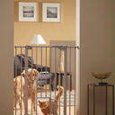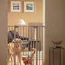 Hundegrind. 17x28 cm. Liten åpning. Justerbar 2-veis åpning med dobbel låsemekanisme, justerbar - passer til døråpninger på 75-84 cm Høyde: 107 cm