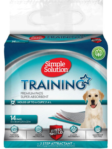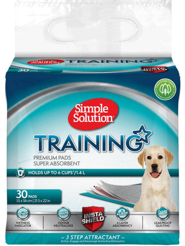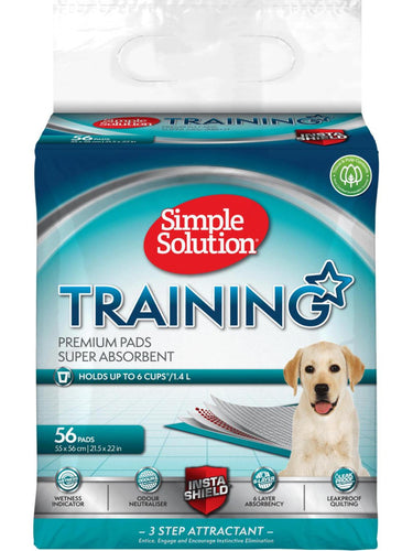 Simple Solution Training valpeunderlag er en praktisk løsning for å lære valpen å være renlig innendørs. Disse putene er spesialdesignet for å absorbere væske og minimere søl, noe som gjør dem ideelle for å lære valper å gjøre fra seg på riktig sted. Valpeputene er laget av et superabsorberende materiale som bidrar til å holde på væske og lukt, slik at du unngår lekkasje og luktspredning i hjemmet. Denne egenskapen gjør dem også egnet til bruk på reise eller ved sykdom der hunden trenger en innendørs toalettløsning. Simple Solution Training valpeunderlag har en sklisikker bakside som holder dem sikkert på plass på gulvet og minimerer risikoen for at valpen skyver dem bort. Disse putene er enkle å bruke og kaste, noe som gjør dem til et praktisk og hygienisk valg for valpens treningsbehov.