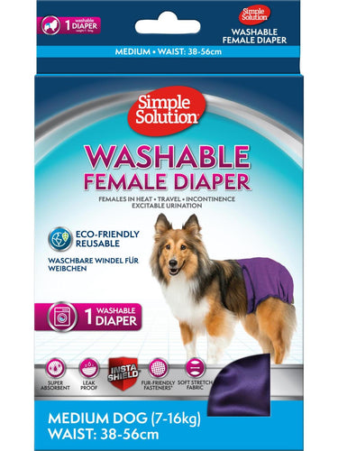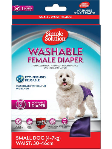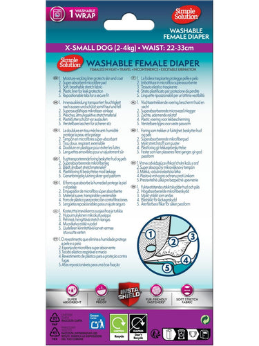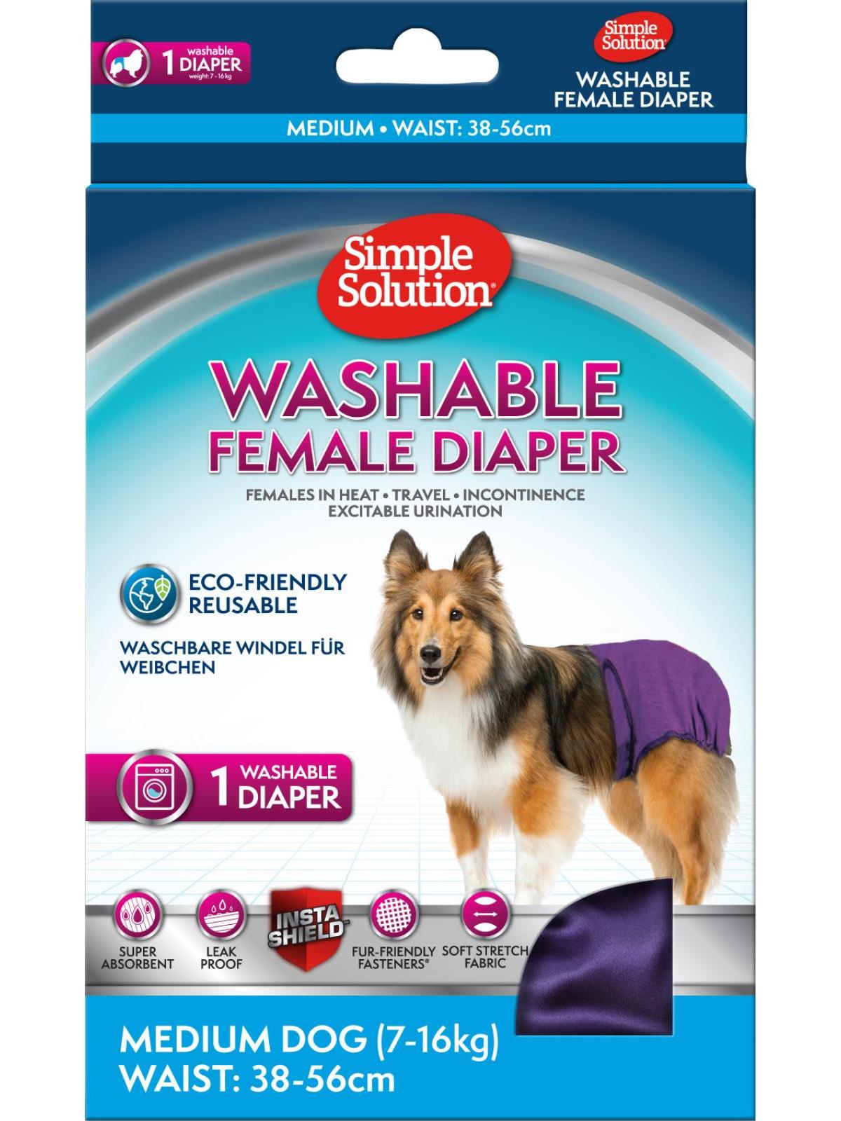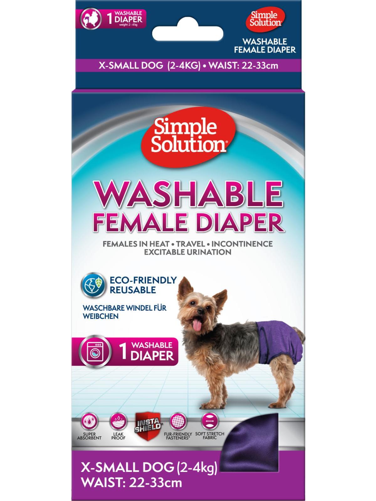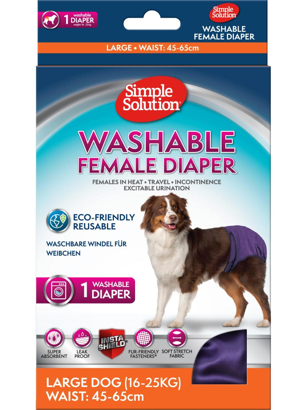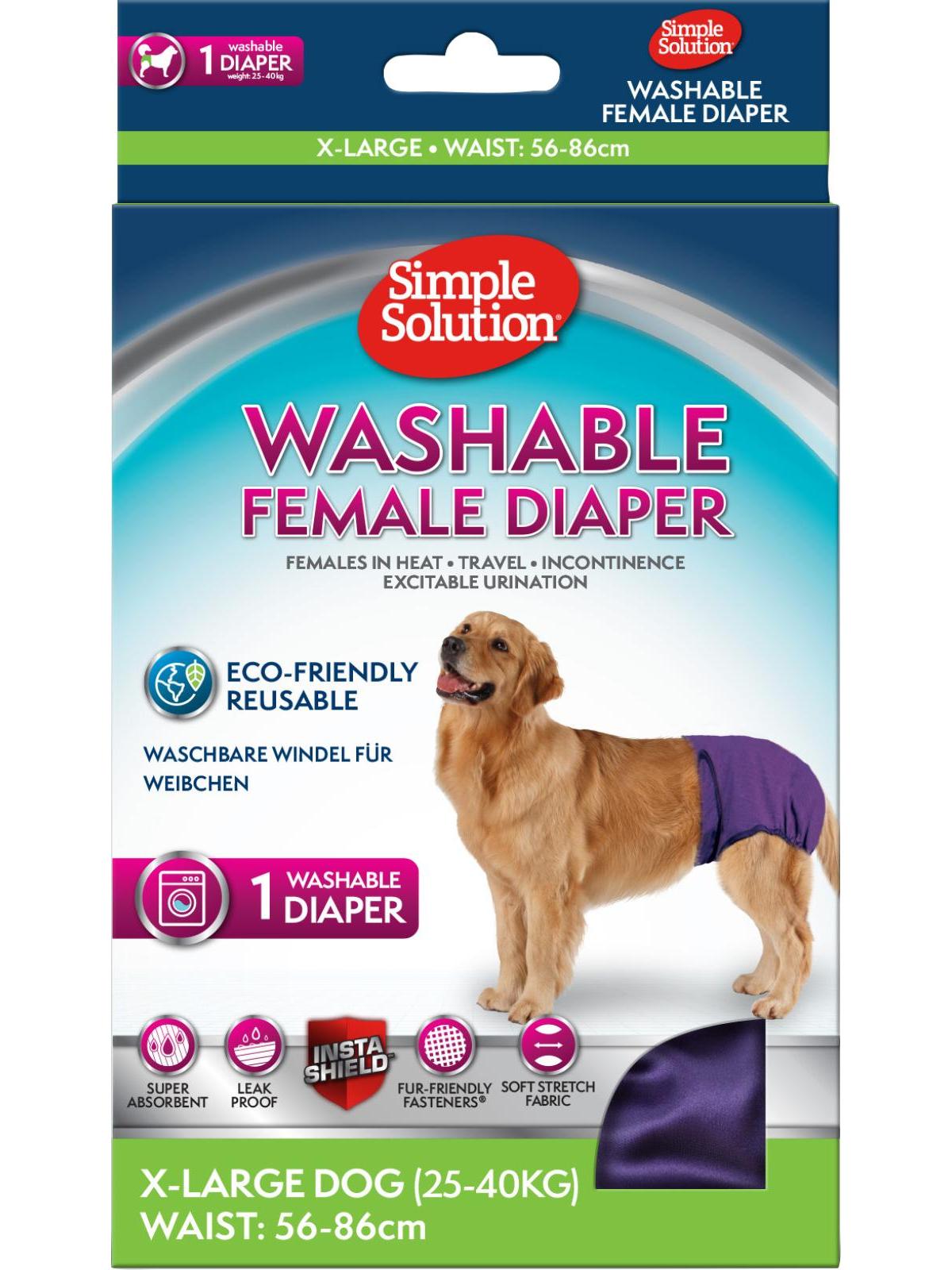 Simple Solution vaskbare bleier for tisper er komfortable og sikre med mykt stretchstoff og langvarig lekkasjebeskyttelse. En mikrofiberpute absorberer væske, mens et svettetransporterende lag holder kjæledyret tørt. Plastforingen holder hjemmet rent. Kan brukes alene ved lette, sesongbetingede løpetid- og urineringsproblemer, eller sammen med en engangsbleie fra Simple Solutions for ekstra absorpsjon. For hannhunder kan du bruke Simple Solution Washable Male Wraps.