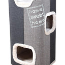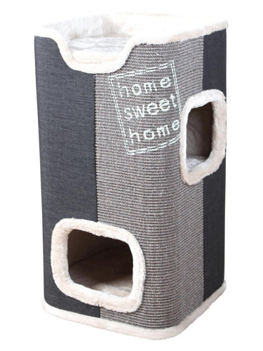 - Mange kloreflater, stamme innpakket med naturlig sisal og sisaloverflate på hulen, for stell av klør og tilfredsstillelse av den naturlige trangen til å slipe klør