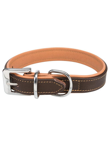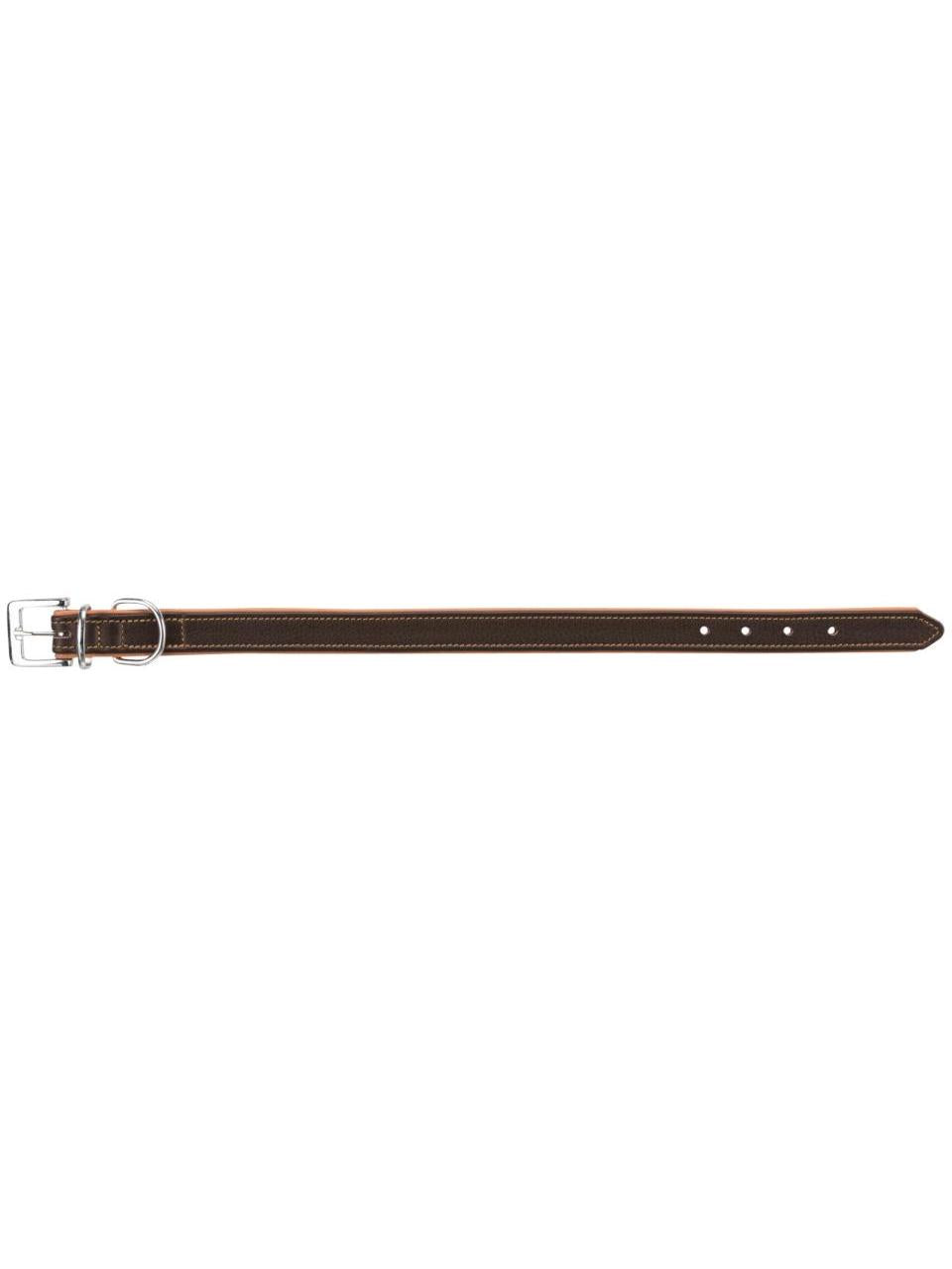 Det myke og fôrede halsbåndet er laget av ekte skinn og har en dobbeltbrettet kant. Ringen er plassert slik at strupehodet er optimalt beskyttet mens linen er festet.