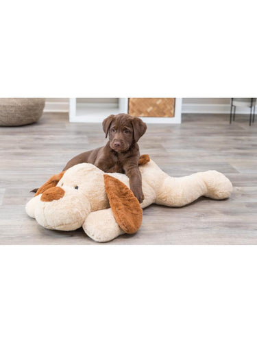 Denne kosebamsen er ideell for hunder som trenger ekstra trygghet, enten det er ved sengetid, under reiser eller nür de er alene hjemme. Den store størrelsen gjør den spesielt egnet for mellomstore til store hunder som liker ü kose med noe mykt og beroligende.