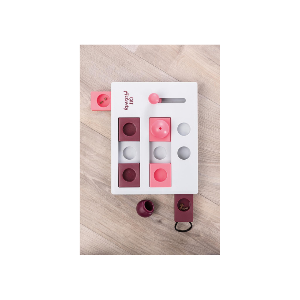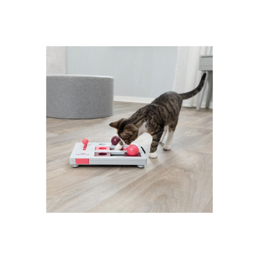 Intelligensleketøy for katter - dette leketøyet har fire forskjellige lekemoduler som byr på ulike utfordringer for katten din. Designet inkluderer 2 kuleformede kjegler og ulike fordypninger og skuffer som oppmuntrer til interaktiv lek og aktiverer kattens mentale ferdigheter. For å sikre stabilitet og forhindre at den sklir, er hjerneleken utstyrt med sklisikre gummiføtter. Leketøyet er laget av slitesterk plast og sikrer langvarig bruk og underholdning. Det følger med en treningsveiledning som hjelper deg med å introdusere og optimalisere bruken av leken. Denne intelligente leken er designet for å utfordre og stimulere kattens hjerne på en morsom og berikende måte.