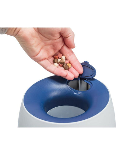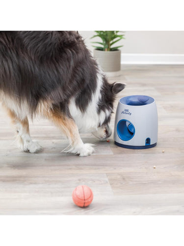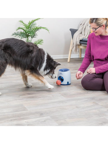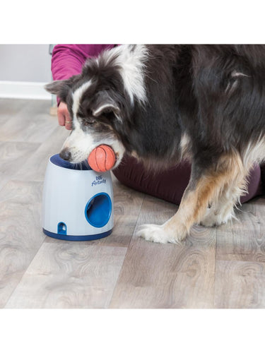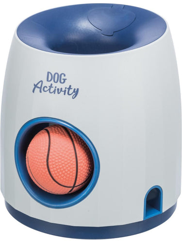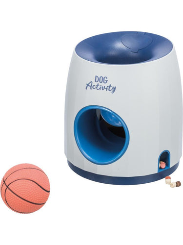 Mekanisk godbitdispenser der godbitene slippes ut som belønning når en ball plasseres i toppen.