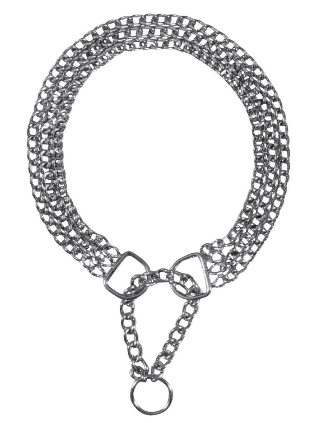 - Vær oppmerksom på at kjettingen må kunne passere over hundens hode.