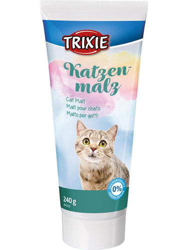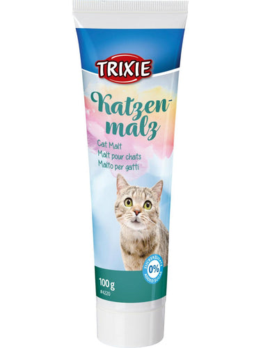 Katter bruker mye tid på å holde pelsen ren og fin. Under rengjøringen svelger katter hår som blir til hårballer i mage og tarm. Disse hårbollene kan føre til fordøyelsesproblemer, og hårbolleproblemer forekommer ofte hos langhårede raser, eldre katter og når kattene skifter pels om våren og høsten. Når katten slikker pelsen med den ru tungen, får den med seg mange hår i munnen. Disse hårene havner i magen hvor de ikke kan fordøyes og derfor blir til hårballer. Trixie maltpasta inneholder maltekstrakt samt olje og fett som sørger for at hårene kan fordøyes før de blir til hårballer. Ingrediensene i maltpastaen danner en film rundt de enkelte hårstråene, som deretter kan fordøyes.
