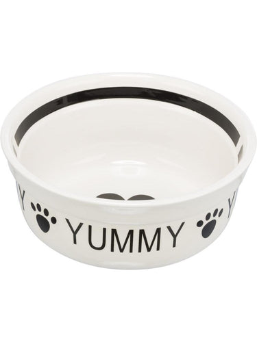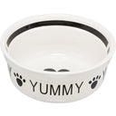 Dette produktet er en keramisk skål med en kapasitet på 0,25 liter og en diameter på 13 cm. Skålen har et stilig design med en kombinasjon av hvite og svarte farger. Den kan brukes som erstatningsskål for et skålsett eller som en selvstendig skål for å servere mat eller vann til kjæledyr. Takket være den slitesterke keramiske konstruksjonen er skålen egnet for daglig bruk og enkel å rengjøre.